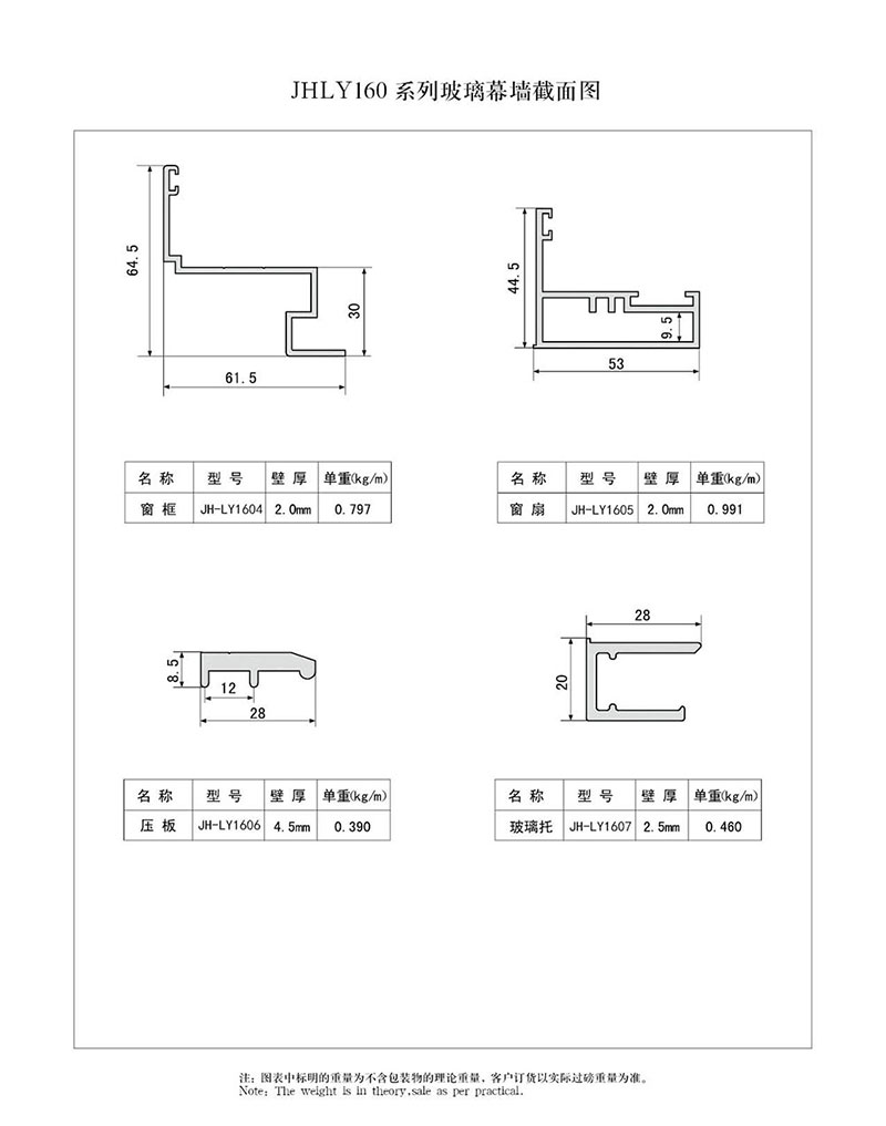 160 系列玻璃幕墻結(jié)構(gòu)圖