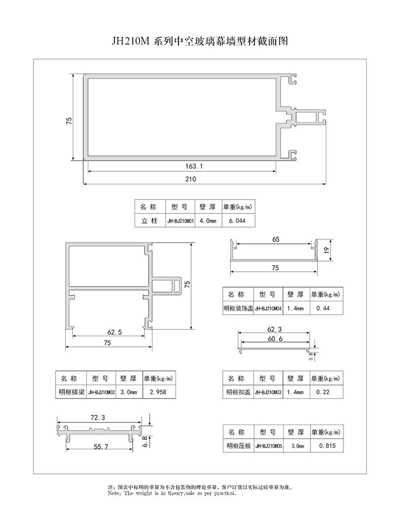 210 系列中空玻璃幕墻型材結(jié)構(gòu)圖