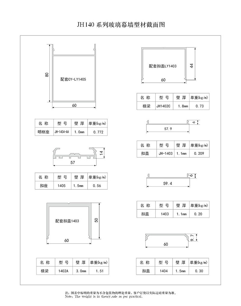 140系列玻璃幕墻型材截面圖