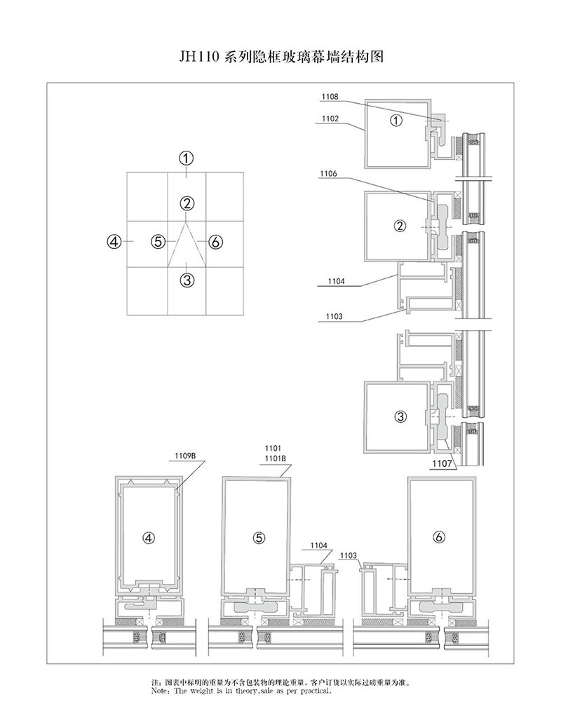 110系列隱框玻璃幕墻結(jié)構(gòu)圖
